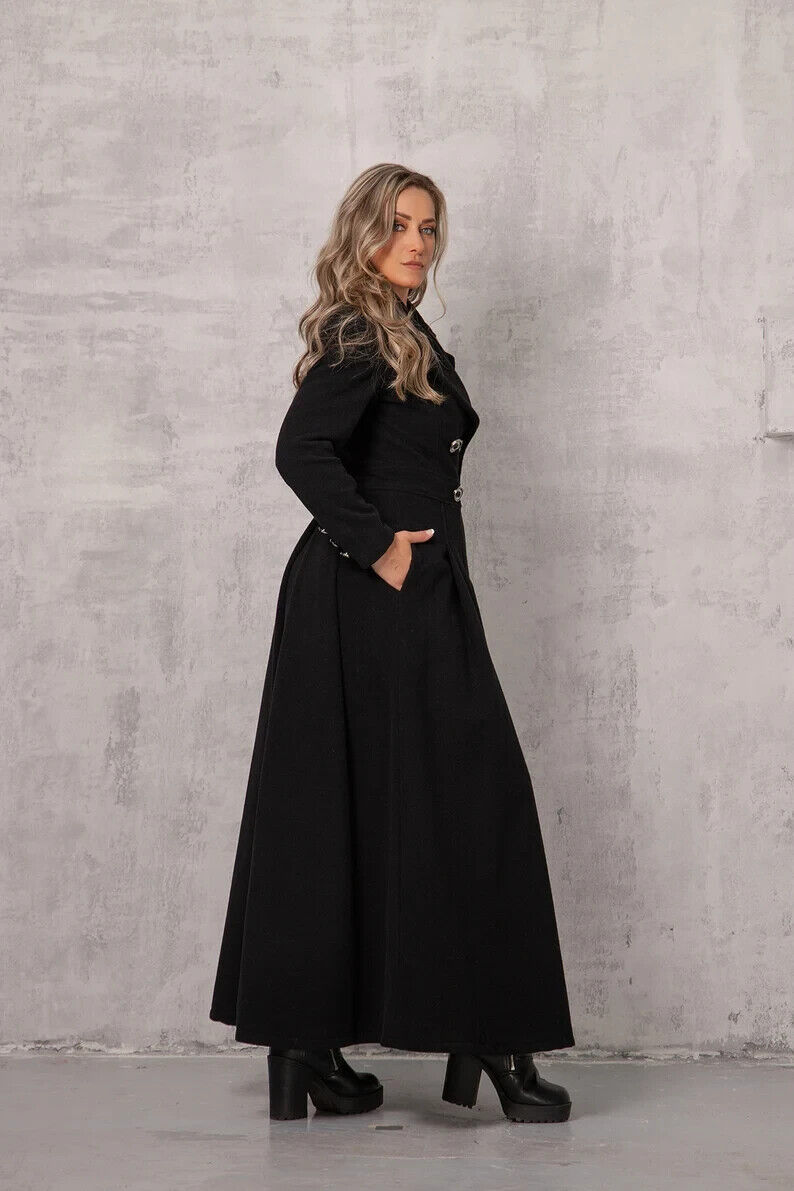 • Feel elegant in our Elegant Black Victorian Maxi Princess Coat a beautiful and long princess-style coat perfect for cold winter days.